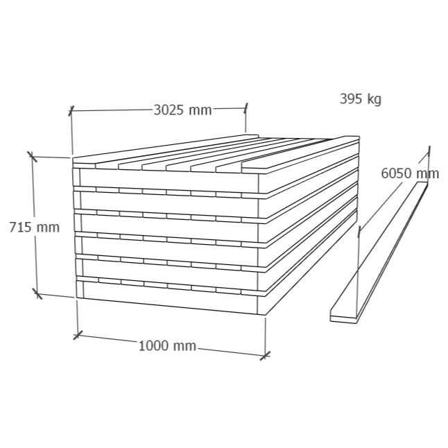Terassi kootaan kuudesta 1x3 m terassielementista, joiden 45x95 mm kestopuinen pohjarunko toimii kantavana rakenteena.