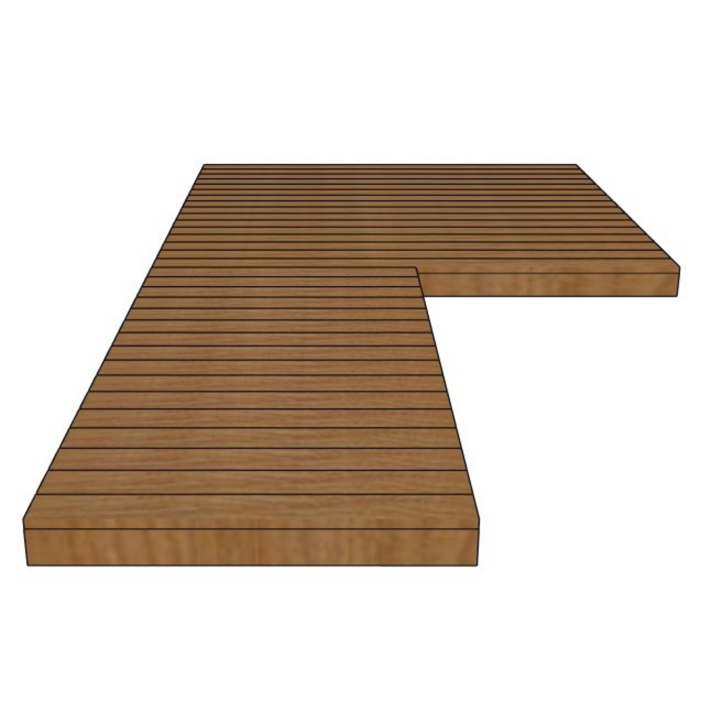 Terassilauta valintasi mukaan kestopuu 28x120 mm tai lämpöpuu 26x117 mm, asennus piilokiinnityksellä terassilaudan sivusta.